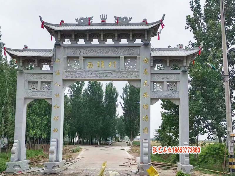 下面就是石牌坊廠家嘉祥張藝石業(yè)對(duì)菏澤市牡丹區(qū)村頭石牌坊修復(fù)完工的照片。